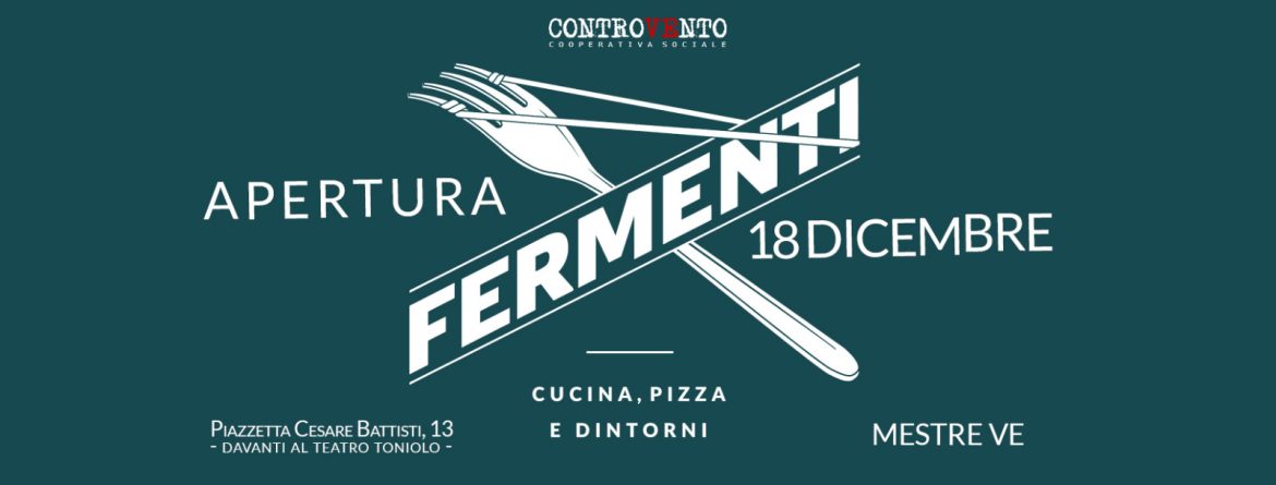 Nuova apertura per la cooperativa sociale Controvento, nostra associata, che inaugurerà domani mercoledì 18 dicembre, a partire dalle ore 17.30, Fermenti il nuovo ristorante pizzeria situato in piazzetta Cesare Battisti, nel cuore di Mestre.